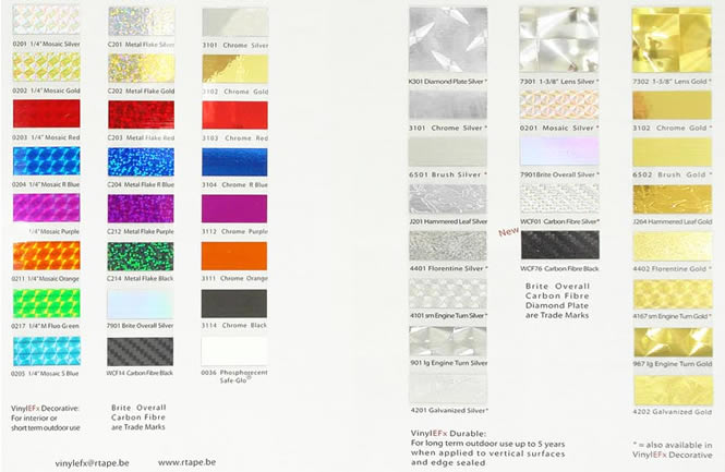 ki izgledajo kot metalne barve vozil), folje v imitaciji